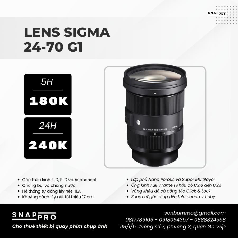 Dải tiêu cự: 24–70 mm (zoom tiêu chuẩn, full-frame mirrorless)